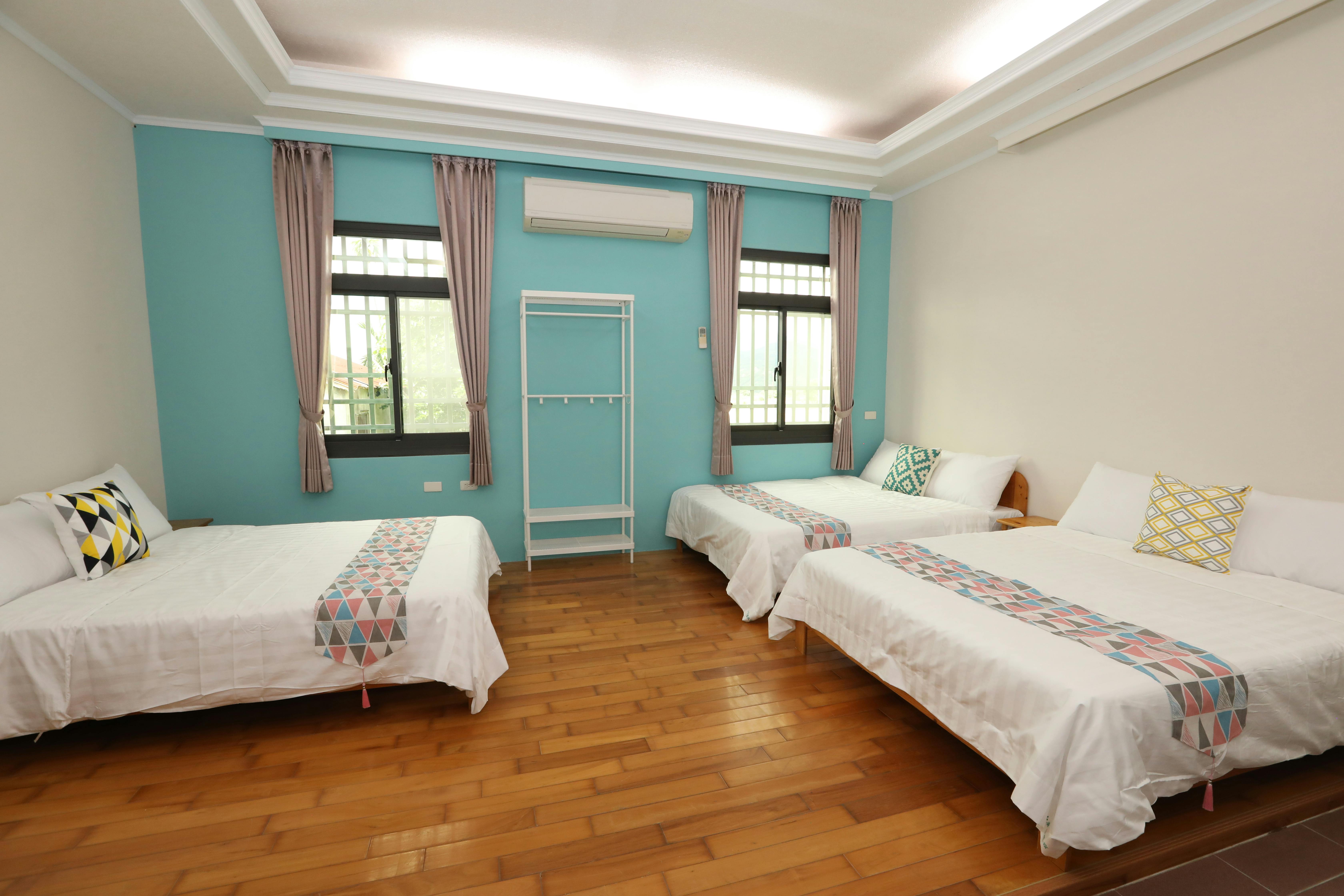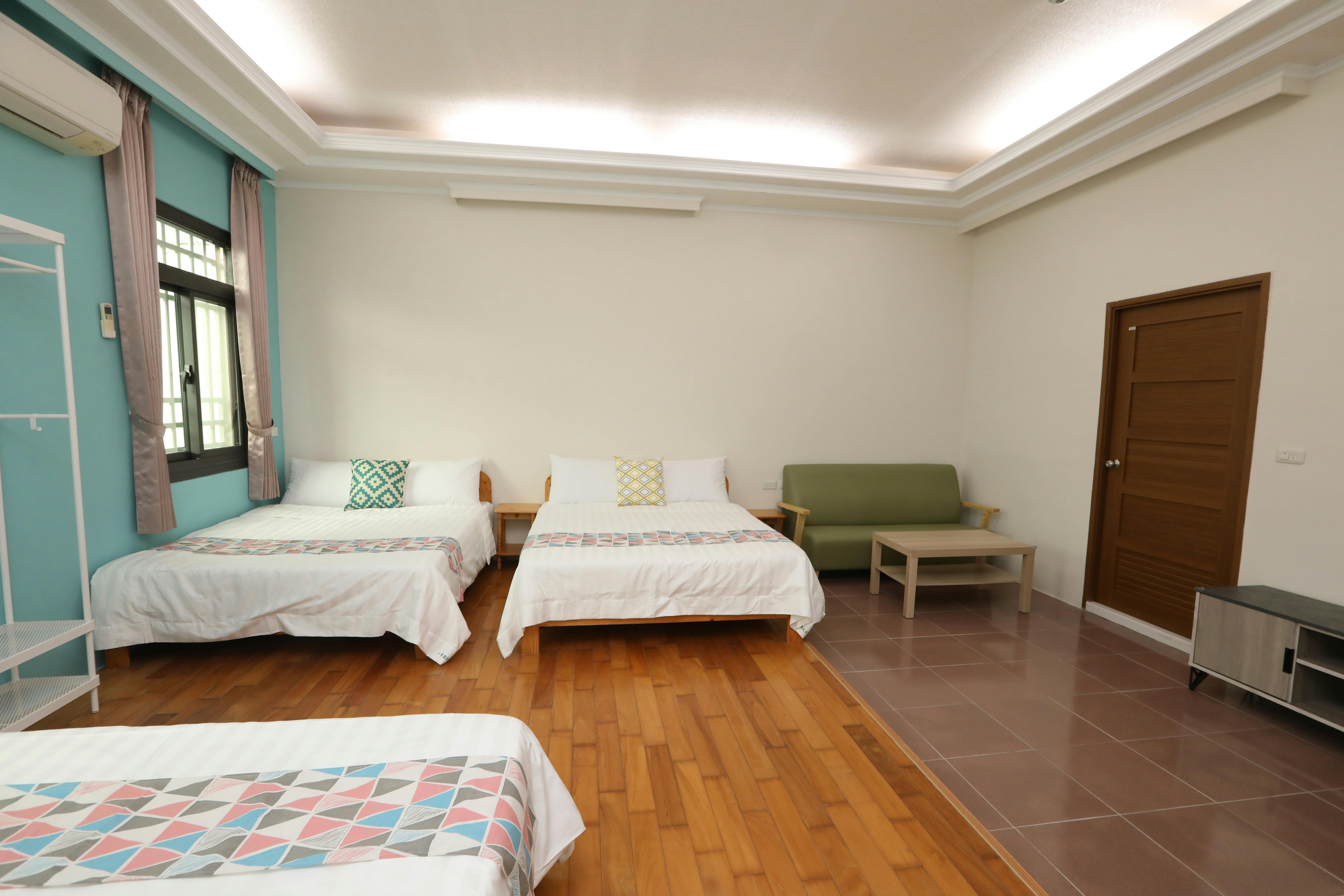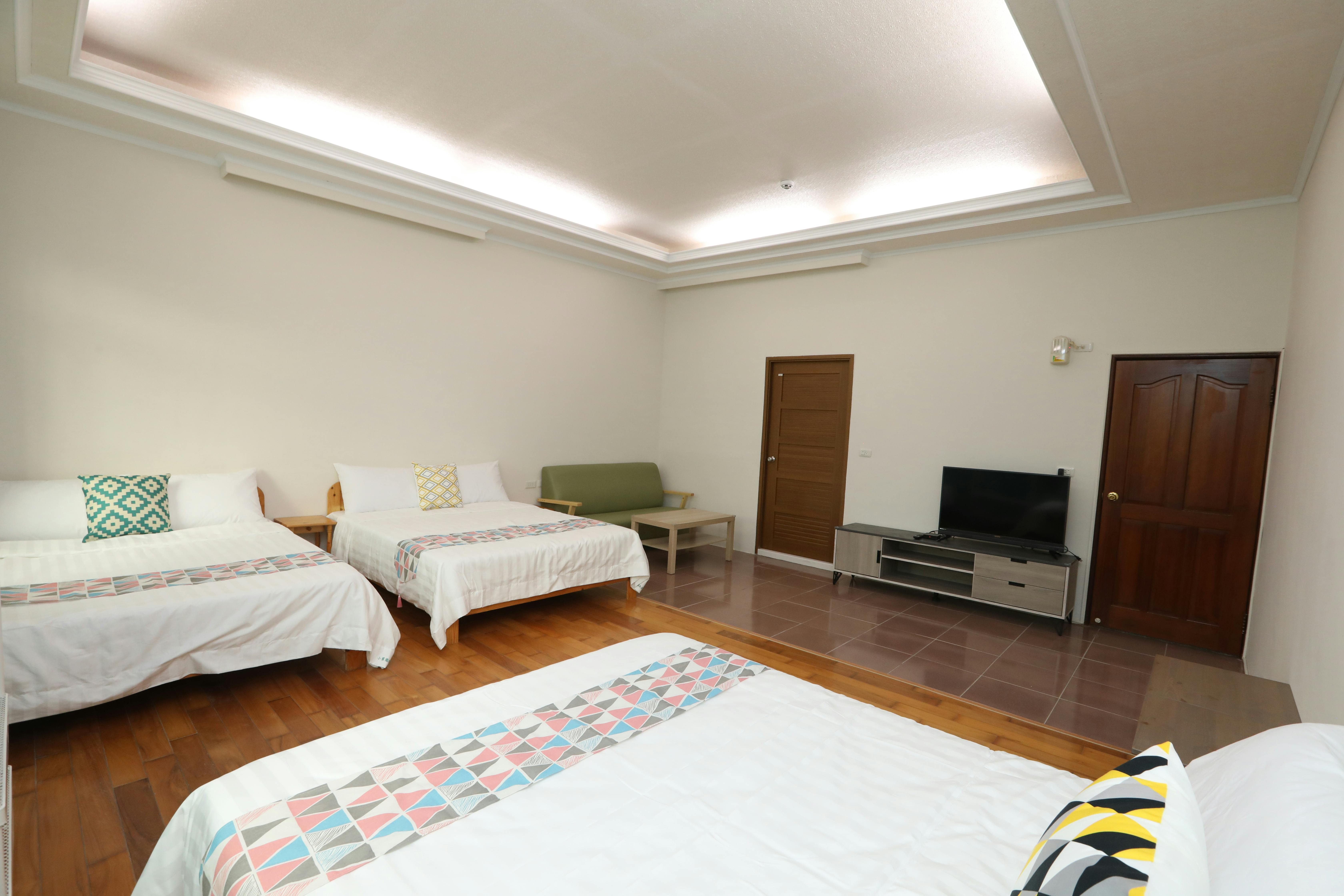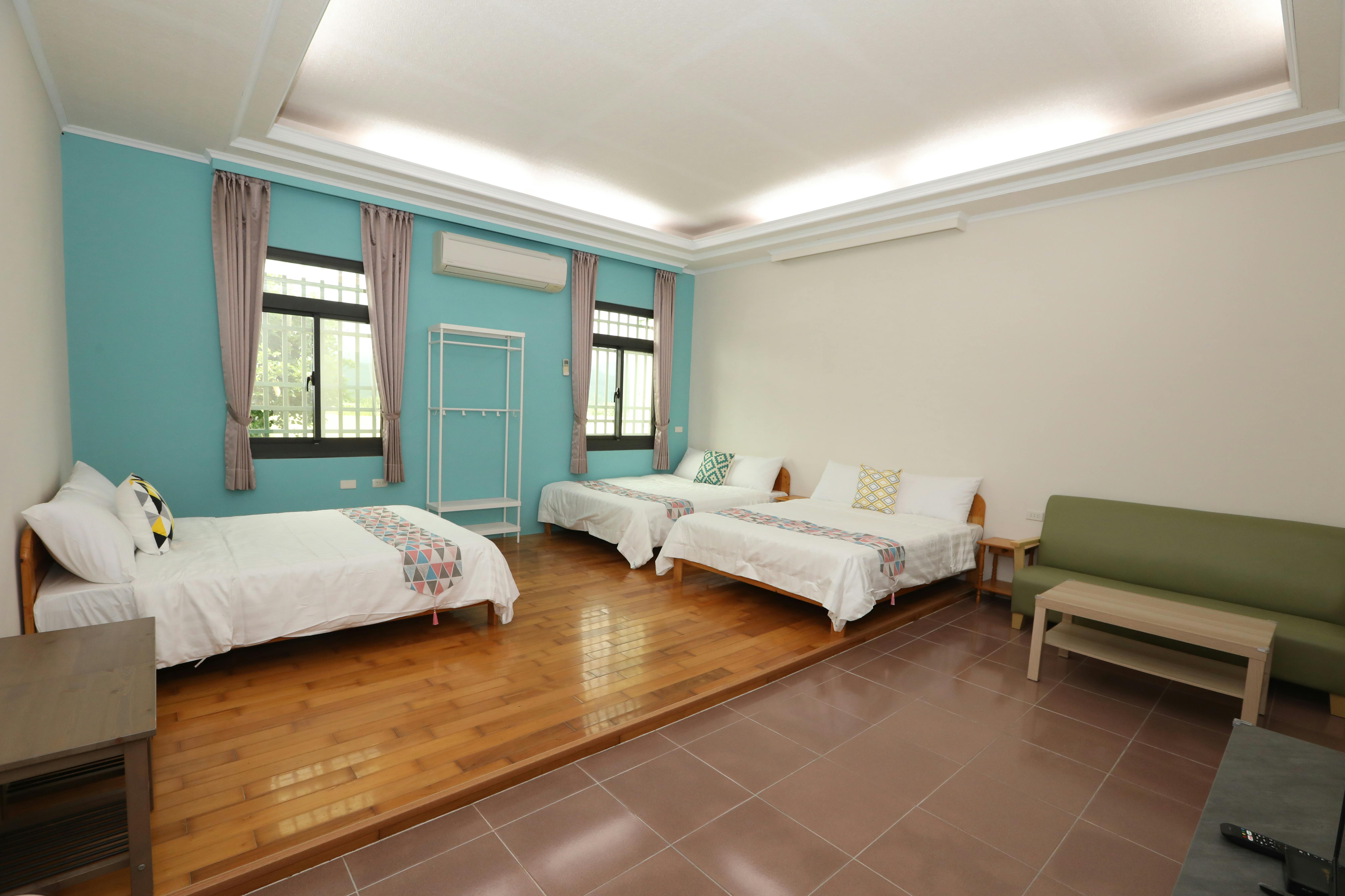 This room type is spacious and has 3 double beds. What's more special is that the bathroom in the room is barrier-free design, and the bathroom door is larger for wheelchair access. This room type is suitable for general families or families with mobility impairments.